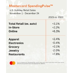 Mastercard SpendingPulse: U.S. retail sales grew +3.1%* this holiday season