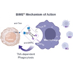 Elpiscience is a privately held, clinical-stage biopharmaceutical company dedicated to developing next-generation immuno-oncology therapies for cancer patients worldwide. Their Bispecific Macrophage Engager Platform (BiME®) is anti-tumor associated antigen (TAA) and anti-signal-regulatory protein α (SIRPα) bispecific antibody-based platform to activate Tumor Associated Macrophage (TAM) phagocytosis killing towards specific TAA expressing tumor cells. BiME® shows highly potent phagocytosis due to engagement of the Fc receptor on TAM and the tumor cells via TAA and SIRPα, and blockade of CD47-SIRPα “don’t eat me” signaling1. This platform is utilized for ES019, an anti-PD-L1/SIRPα bispecific antibody.