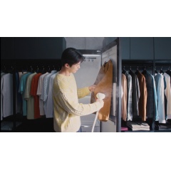 A first for the LG Styler lineup, the new model features a handheld, high-pressure steamer that makes it easier to remove wrinkles from shirts and other garments, and saves the hassle of having to use a separate iron. Users can simply hang their wrinkled clothes inside the door, take out the steamer attached to the bottom of the Styler, and initiate the steam process with the press of a button. The steamer employs powerful, high-pressure steam to penetrate garments, leaving them smooth and soft, significantly reducing the need for ironing.1 Moreover, the compact size of the high-pressure handy steamer enhances convenience and allows for easy storage inside the Styler.