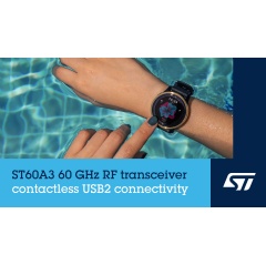 As a cost-effective cable replacement, ST60A3H0 and ST60A3H1 transceivers let designers create products with slim, aperture-free cases that can be stylish, water-resistant, and allow convenient wireless docking. Self-discovery with instant mating saves pairing, while low power consumption preserves battery runtime. They operate in the 60GHz V-band and provide eUSB2, I2C, SPI, UART, and GPIO tunneling.