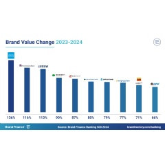 As the world’s top banking brands reach new heights, China’s mega-banks continue to dominate at the top of the brand value ranking. Another key insight from our 2024 data is that local banks increasingly outshine their larger counterparts in brand strength. Dominant brands thrive in singular markets with limited competition, while banks expanding into multiple markets may successfully augment their brand value but risk diluting brand strength"