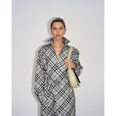 The Burberry Check is cut on the bias and updated in sand and lichen colourways – a confident new approach to an iconic British design. It is printed on swimwear, yarn-dyed nylon jackets and coordinated bottoms, as well as cotton twill shirt dresses and tailored cotton poplin shirts.