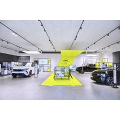 The interior showroom inside the dealership welcomes visitors with an equally clear and focussed layout – each dedicated zone has its own unmistakable function. The central focal point is the aesthetically and purely designed area in bright Opel yellow. The so-called “Discovery Hub” acts as a lounge area with uniquely designed chairs and sofas where customers can relax and learn more about the digital future as well as the brand’s rich heritage. The wide range of merchandising items from Opel brand fashion to practical accessories can also be found here.