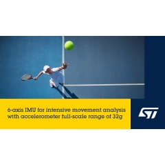 Geneva, Switzerland, April 18, 2024 – The LSM6DSV32X 6-axis inertial module (IMU) from STMicroelectronics has a large accelerometer full-scale range of 32g and 4000 degrees-per-second (dps) gyroscope to measure intensive movements and impacts, including freefall height estimation. Ready to drive future generations of edge-AI applications, the new sensor device enables extra features and longer battery runtime in consumer wearables, asset trackers, and impact and fall alarms for workers.