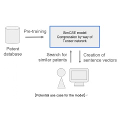 For this project, the companies will carry out pre-training for the SimCSE model based on a patent database to vectorize patent data documents, making it possible to then find similar patents with a high level of accuracy. The companies have already succeeded in efficient compression of the SimCSE model’s data by utilizing tensor network*2 technology.