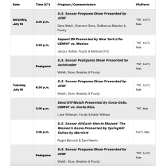 TNT Sports and the U.S. Soccer Federation are in the second of an eight-year multimedia rights agreement which made TNT Sports’ networks and platforms the exclusive English-language home to more than 20 Women’s and Men’s National Team matches every year. As the full broadcasting schedule is finalized, TNT Sports and U.S. Soccer will share the updated programming information as soon as possible.