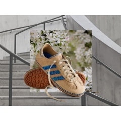 With a new energizing take on a classic silhouette, the CLOT Gazelle by Edison Chen arrives with premium nubuck details on a jute upper and an espadrille sole now adorned with blue stripes. The espadrille gives the shoe a luxurious touch while the khaki coloring achieves a playful, relaxing tone. Derived from the study of traditional Espadrille-making and inspired by classic Espadrille artisans, the stitching was applied to the final construction of the CLOT Gazelle, with special attention given to how the upper is assembled to the bottom. The cotton tape is all custom engineered for the shoe and beaded using an intricate process inspired by Eastern influence. Finally, the midsole is custom engineered for maximum support, highlighting the new construction process. The CLOT Gazelle is a superlative execution of craftsmanship and storytelling, made with the best hardware and materials.
