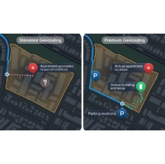 Currently, Premium Geocoding is only available in the United States — although there are plans for the solution to be introduced to additional countries in the future. It offers incredibly high data coverage, mapping some 40 million locations and waypoints across the country. More than 99% of those locations — including individual apartment units, parking points and building entrances — are accurate to within 3 meters (10 feet). That’s a huge jump in accuracy, considering that standard geocoding solutions only tend to get you within a couple of hundred feet of an exact unit location at more complex addresses.