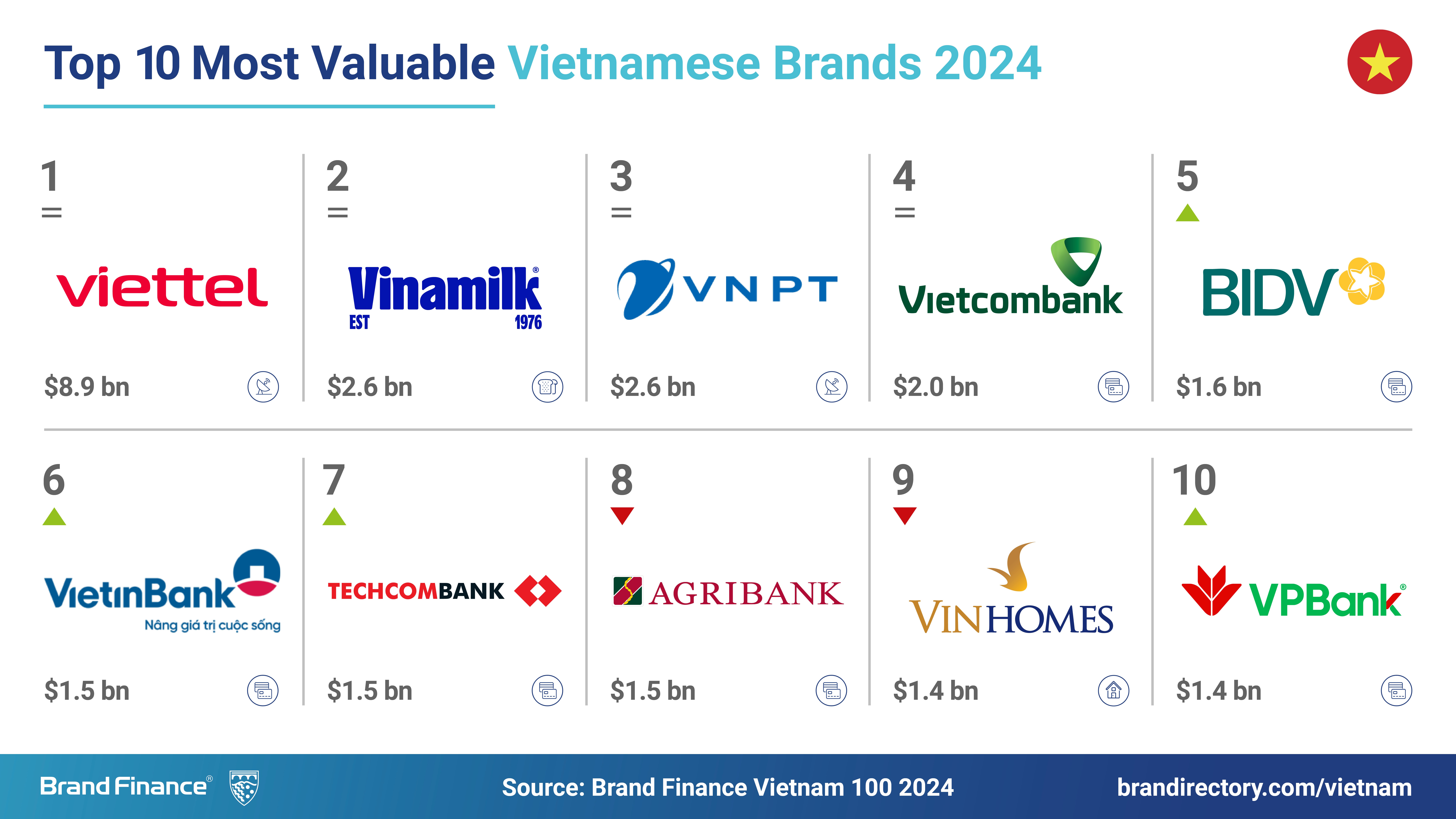 - Top 3 most valuable Vietnamese brands retain 2023 rankings; Viettel leads with brand value of USD8.9 billion, followed by Vinamilk and VNPT