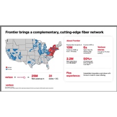 - Increases reach across more markets. Verizon will gain access to Frontier’s high-quality customer base in markets highly complementary to Verizon’s core Northeast and Mid-Atlantic markets. Frontier’s footprint offers substantial room for increased penetration in both fiber and mobility services and Verizon is well positioned with stores throughout Frontier’s territory.