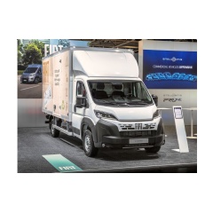 The E-Ducato Cargo Box showcased at the Hanover booth offers an impressive cargo volume of 18.3 m³, complemented by a spacious interior with dimensions of 4,230 mm in length, 2,032 mm in width, and 2,150 mm in height. It is built on the Battery Electric Chassis Cab version, delivering 410 Nm of peak torque and a powerful output of 200 kW (270 hp), paired with a 110-kWh battery, making it a highly capable and efficient electric vehicle.