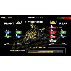 · Soft-oriented range: both front solutions for the WorldSBK riders will be standard, with 8 units of SC1 and as many SC2 tyres. For the rear, there are the standard SCX and the development supersoft in D0820 specification, present in 8 units each, as well as 5 units of SC0 and 4 of SCQ, the latter intended only for Superpole and Superpole Race. In the case of rain, each rider will have 3 Intermediate and 8 SCR1 tyres available, both for the front and rear. For the front, each WorldSSP rider will have 7 units of SC1 and 6 of SC2 at their disposal, while for the rear there will be 7 units of SCX and 6 of SC0. All solutions in this class are standard.