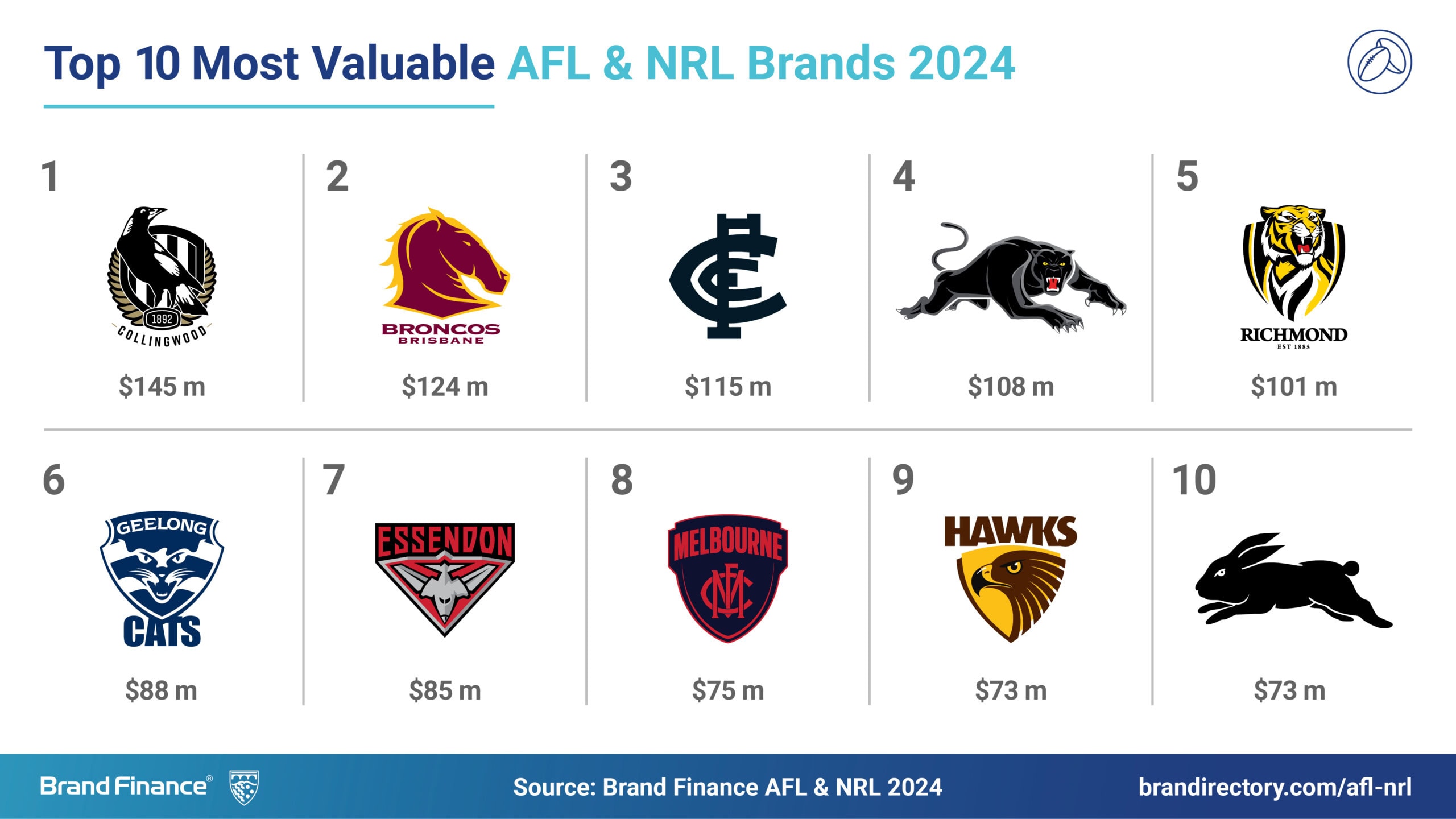 - Australian football club brands are amongst the most valuable football club brands in the world