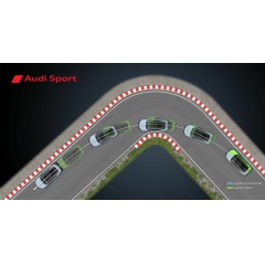 The RS 3 avoids understeer right at the entrance to the bend and turns in more willingly thanks to fine-tuning – including brake torque vectoring. This means that while the torque splitter provides torque to the rear wheel on the outside of the curve, the wheels on the inside of the bend are braked slightly. Thanks to these finely dosed braking interventions, the RS 3 follows the curve radius more precisely than before and is positioned earlier and better at the apex of the curve. This allows the driver to accelerate sooner and achieve a higher speed at the exit of the bend.