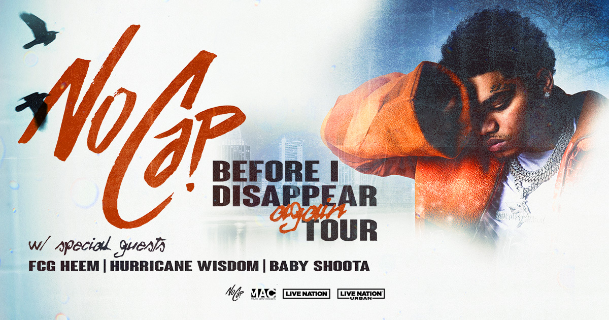 The Before I Disappear Again Tour sees NoCap – who is also among the top-billed rap stars performing at the 107.5 WGCI Big Jam, set for Chicago, IL’s Wintrust Arena on Saturday, December 7 – celebrating the release earlier this year of his acclaimed second studio album, Before I Disappear Again, available everywhere now via Atlantic Records HERE. The album – which debuted at #2 on Billboard’s “Top Rap Albums” and #3 on “Top R&B/Hip-Hop Albums” charts along with a top 20 debut on the overall Billboard 200 – includes such hit singles as “Maliboo,” “Yacht Party,” and “Baby Drake,” all joined by official music videos boasting over 10M combined views at YouTube. Hailed by HotNewHopHop as a “hyped up 23-track behemoth,” Before I Disappear Again also includes high-profile features from Quavo, French Montana, Rylo Rodriguez, Sleepy Hallow, SoFaygo, and D’Yani.