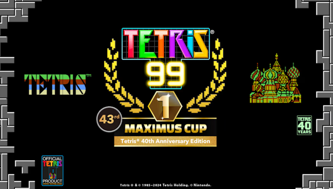 The competition is stacking up in the Tetris® 99 43rd MAXIMUS CUP online event. This time, you’ll have the opportunity to earn an in-game theme inspired by the NES™ Tetris game! During the event, collect 100 event points by playing matches in Tetris 99 mode to unlock the in-game theme.