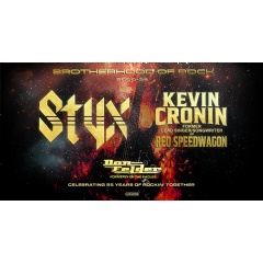 Legendary rockers Styx and Kevin Cronin, the iconic voice and writer behind REO Speedwagon’s greatest hits, have one of the strongest brotherly bonds spanning 25 years, especially since they’ve crossed paths on the North American concert trail along with the occasional joint festival concert. Fittingly, next summer they’ll join forces for the sixth time for their “Brotherhood of Rock” tour, along with special guest Don Felder (a former lead guitarist for the Eagles), that will kick off May 28, 2025 in Greenville, SC at the Bon Secours Wellness Arena.