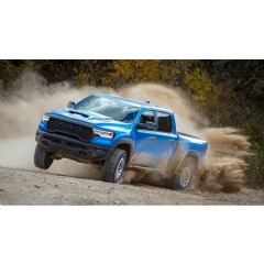 A BorgWarner full-time active transfer case and a Dana 60 rear axle with an electronic locking differential provide the strength and stability needed for rugged terrains. Additionally, the Bilstein Black Hawk e2 adaptive performance shocks, coupled with Ram’s Active Terrain Dynamics system, deliver a smooth ride and precise handling, both on- and off-road.