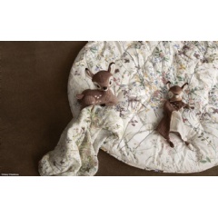 The baby collection presents two unique Bambi rattles in a smaller and larger size, as well as a Bambi-shaped snuggle. Here there is also bedding and fitted sheets perfect for the baby cot, in addition to a round playmat in the pink colourway. A 2-pack of cloths, a light, soft muslin blanket and a plush baby velvet blanket round up the collection.