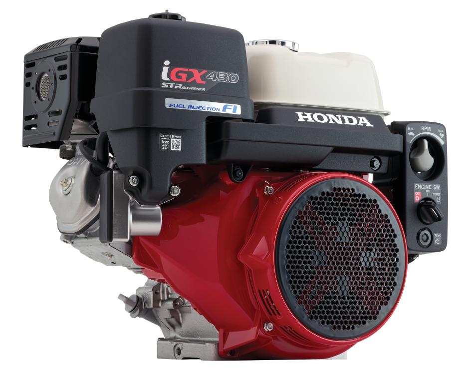 - Honda iGX400 and iGX430 engines will integrate smart fuel-injection (FI) and the Honda Self-Tuning Regulator (STR) governor that works with an integrated electronic control unit (ECU) for customization and drive-by-wire remote operation with various configurable control modes.
