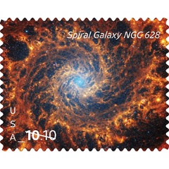 The captivating image on the new Priority Mail stamp shows spiral galaxy NGC 628, located 32 million light-years from Earth in the constellation Pisces.
