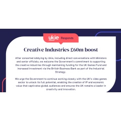 After concerted lobbying by Ukie, including direct conversations with Ministers and senior officials, we are encouraged by the Government’s commitment to supporting the creative industries through maintaining funding for the UK Games Fund and increased investment via the British Business Bank as part of the Industrial Strategy.