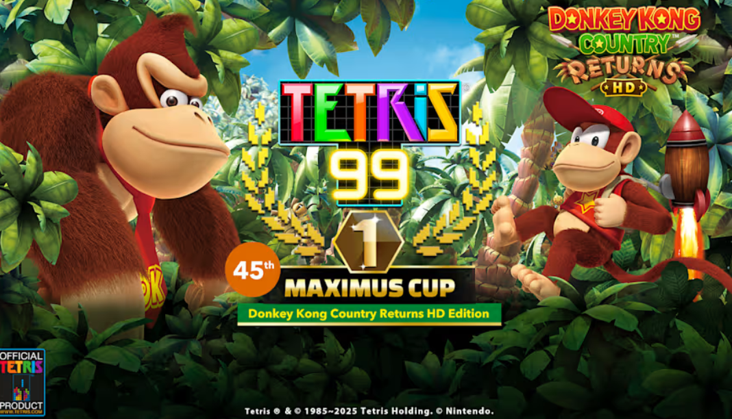 Get ready to swing into the Tetris® 99 45th MAXIMUS CUP online event! This time, you’ll have the opportunity to earn an in-game theme inspired by the Donkey Kong Country™ Returns HD game. During the event, collect 100 event points by playing matches in Tetris 99 mode to unlock the in-game theme.