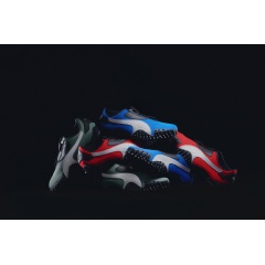 Adding a touch of color to the Y2K-era design, red, green, and blue colorways utilize a fine mesh for the upper, matched with black accents and white logo hits on the shoe’s Formstrip and heel. Distilling the Mostro down to its purest expression, the beastly pack is a timeless play on the innovative design, maintaining its sculptural shape, low profile, and avant-garde spiked sole.
