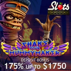 This week SlotsCapital.lv Casino invites players to join a festive dance with mummies and pharaohs while enjoying a 175% bonus, up to $1750, on the new Shake Your Mummymaker slot from Rival, March 6-12.