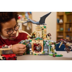 - LEGO Jurassic World Rebirth Spinosaurus & Quetzalcoatlus Air Mission (76976) for fans ages 8+ features Zora Bennett, Martin Krebs, Dr. Henry Loomis and Duncan Kincaid at the ancient temple and kids can play-pretend gathering a valuable DNA sample from the Quetzalcoatlus nest. The set also includes a Spinosaurus which has moving legs, arms, tail, head and jaw.