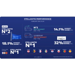 On the total market, Stellantis confirmed its second position among European OEMs in February and achieved the highest market share of the last 12 months: 18.1% (January closed at 17.1%). The leadership in the markets of France, Italy, and Portugal remains unchanged, with significant growth in Austria.