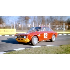 For use in competition, Autodelta further modified the Alfa Romeo GTA. The racing versions had a 90-liter tank, oil cooler, roll cage, ZF limited-slip differential, stabilizer bar even on the rear axle and a longer fifth gear ratio. Additional racing parts were available, such as special front suspension, a modified driver-slide rear axle, and different gear and differential ratios. The interior was also even more spartan: in some models, the dashboard was made of a type of cardboard covered with a decorative film. The engine output increased to about 170 hp thanks to the use of specific pistons, a steel exhaust manifold with a larger diameter, supercharged camshafts and a resonance box above the intake trumpets. The racing exhaust, which exited sideways under the driver’s door, produced an unmistakable sound. In the latter half of the 1960s, the Alfa Romeo GTA dominated the 1.6-liter class in touring car racing. Factory driver Andrea de Adamich (Italy) won the European Championship in 1966 and 1967, while Spartaco Dini (Italy) won the title in 1969. Alfa Romeo also won the constructors’ title in the same years. One of the most famous drivers in the GTA was the future Formula 1 world champion Jochen Rindt. In addition, the Alfa Romeo GTA achieved countless victories in national championships, hill climbs and even rallies. In Germany, the Giulia Sprint 1600 GTA, produced in only about 500 units, cost about 21,500 Deutschmarks in 1965, making it one of the most expensive production cars. In 1968, Alfa Romeo also introduced a 1300 version, which was also produced in about 500 units. Today, the GTA versions of the Giulia Sprint are among the most sought-after classic cars, with prices well over €100,000. Racing cars with a documented history are often worth three times as much.