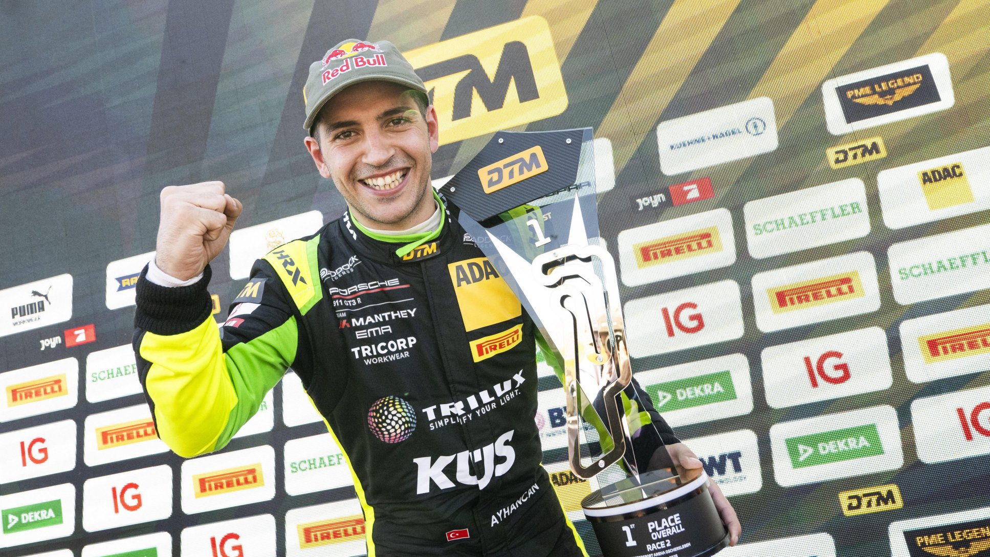 Ayhancan Güven is the first Turkish race winner in DTM history. Driving the 911 GT3 R for Porsches Manthey customer team, the 27-year-old won Sundays race at the season opening weekend at the Motorsport Arena Oschersleben. His Austrian teammate and factory driver Thomas Preining rounded off the German racing squads successful outing with third place. The two former Porsche Juniors benefited from a perfectly executed pit stop strategy at the debut of the new race format, which featured two mandatory tyre changes for the Sunday race.