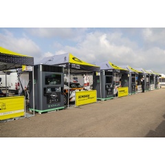 Another major advantage given the constantly changing local conditions: the charging points are not tied to a fixed structure, but can be positioned freely and independently of each other. The highly flexible system has a modular structure and therefore offers individual adaptation to the respective needs of the user and a correspondingly wide range of applications – including use at the rally service area. The mobile park is therefore specially adapted for rally use and makes it possible to permanently supply all participant vehicles with the maximum power output everywhere.