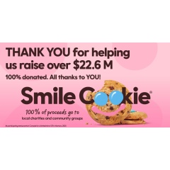 Tim Hortons is proud to announce that a record-breaking $22.6 million was raised through the sales of Smile Cookies this year, supporting over 600 charities and community groups across Canada and in the United States.