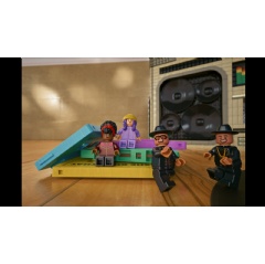 Inspired by RUN DMC’s original video, She Built That opens with LEGO minifigure duo Jazzy and Rocky stepping into a gym with undeniable swagger - Jazzy carrying a brick-built SBT boombox and Rocky with mic in hand. They spot the legendary RUN DMC Minifigs. DMC breaks into his signature shuffle.