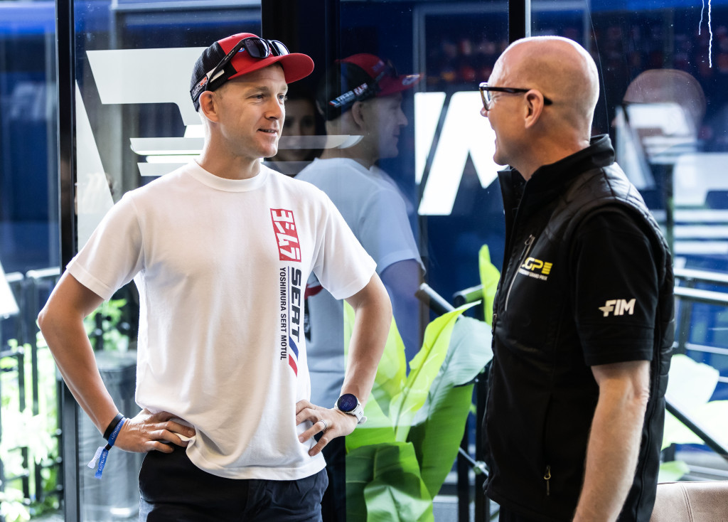After receiving expert guidance from Sweden’s six-time FIM Speedway world champion Tony Rickardsson (pictured below right with Linfoot) and former New Zealand rider and coach Tony Briggs – son of four-time FIM Speedway world champion Barry Briggs – Linfoot swapped his Yoshimura SERT Motul Suzuki GSX-R1000R for a 500cc Speedway GP machine – and took to the shale with ease.