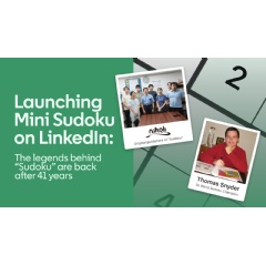 LinkedIn is introducing Mini Sudoku, the latest addition to our lineup of thinking-oriented games, available to play. This marks the first time Nikoli—the small Japanese puzzle magazine that created sudoku 41 years ago—has collaborated with a Western company. Together with Thomas Snyder, 3x World Sudoku Champion and LinkedIn’s own Puzzlemaster, we’ve brought this new, quickplay version to life—giving long-overdue recognition to the origins of this iconic puzzle while creating new moments for members to take a break and connect with their network.