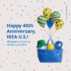 IKEA U.S. launches customer appreciation campaign in celebration of its 40th anniversary. Now through June 29, customers can take advantage of exclusive product offers, gift card giveaways, limited-edition IKEA apparel, and special in-store events.