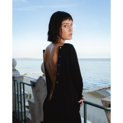 At the heart of the concept was the idea of reinterpreting the Lacoste polo as a couture piece worn backwards and buttoned along the spine, it reveals a striking open back that extends to the lower back. The result is a creation where the purity of the line meets the intensity of a dramatic backless design — minimal yet spectacular.