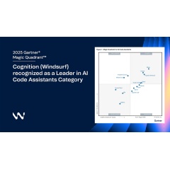 Cognition today announced that its enterprise IDE, Windsurf, has been named a Leader in the 2025 Gartner® Magic Quadrant™ for AI Code Assistants.