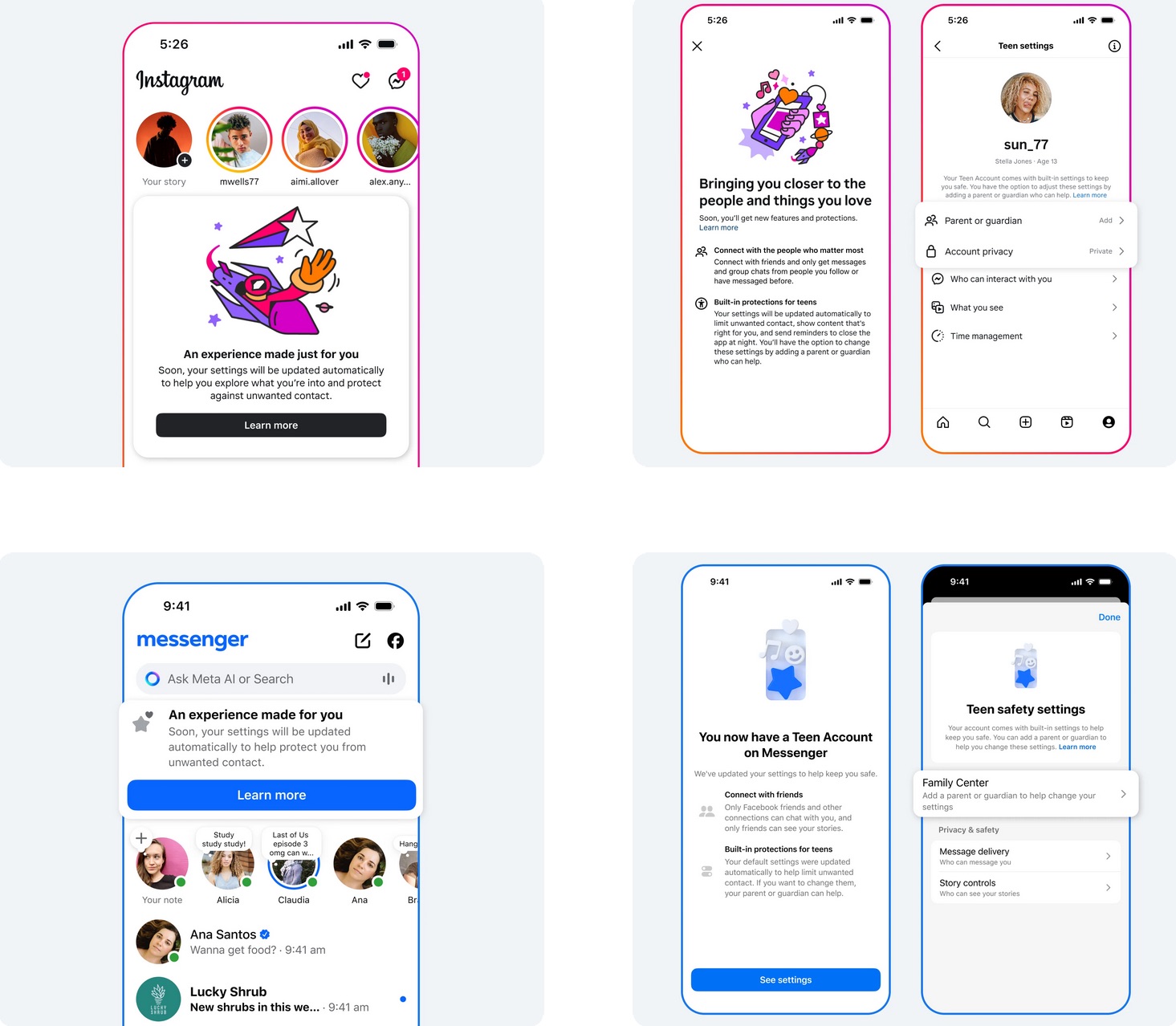 A year ago, we introduced Teen Accounts – a significant step to help keep teens safe across our apps. As of today, we’ve placed hundreds of millions of teens in Teen Accounts across Instagram, Facebook, and Messenger. Teen Accounts are already rolled out globally on Instagram and are further expanding to teens everywhere around the world on Facebook and Messenger today. Teen Account protections were designed to address parents’ top concerns with automatic protections to limit who their teens are talking to online and the content they’re seeing, and ensure their time is well spent. While there’s always more work to be done, we’re encouraged to see that Teen Accounts are bringing parents more peace of mind when it comes to their teens’ online experiences.