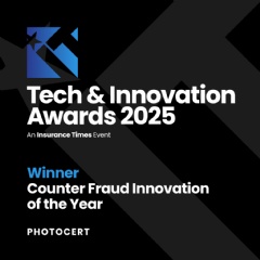 Photocert proudly announces its victory as the ‘Counter Fraud Innovation of the Year’ at the 2025 Insurance Times Tech & Innovation Awards in London