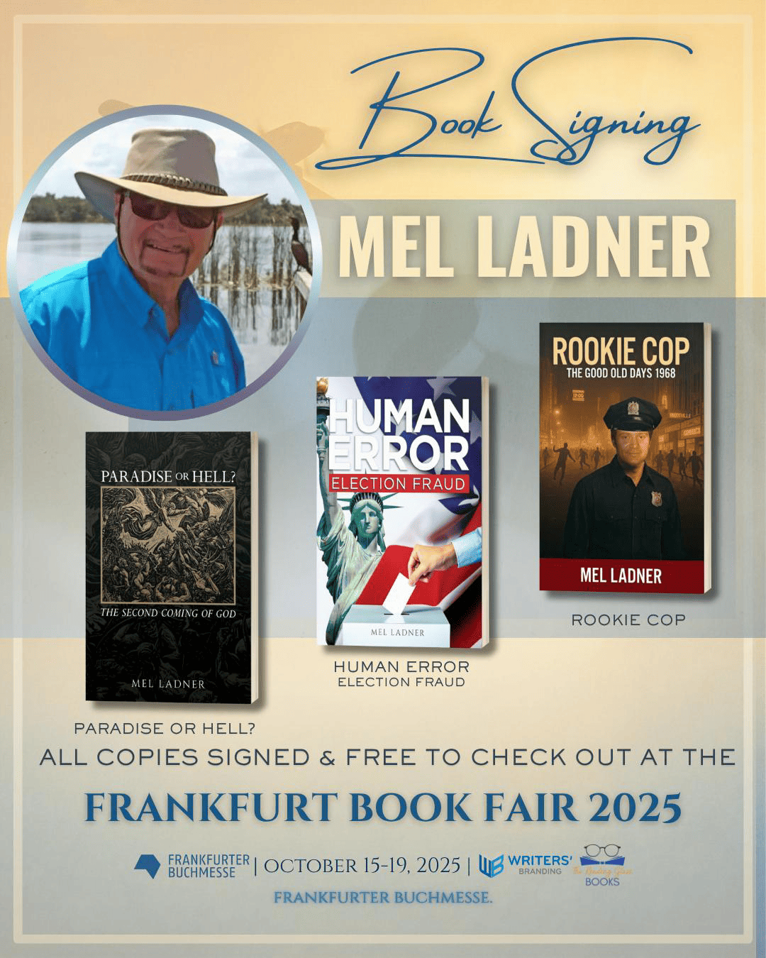 The Reading Glass Books is honored to showcase the books of retired New York City police officer and author Mel Ladner at Stand #6.0 E15 during this year’s Frankfurt Book Fair. Although Ladner cannot be physically present, his works will be featured in a special book showcase, giving fairgoers the opportunity to explore his powerful stories and connect with his voice through his published titles.