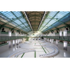 Staging its Spring-Summer 2026 show in the landmark Hall Eiffel at Lycée Carnot, Lacoste transforms Hector Degeorge’s soaring 1895 glass-and-iron masterpiece into The Locker Room. Tiled surfaces evoke the “backstage” familiar to tennis stars like René Lacoste and athletes everywhere, while steamed curved glass panels and cascading shower curtains create an atmosphere of voyeurism, dissolving the boundaries between private ritual and public spectacle.