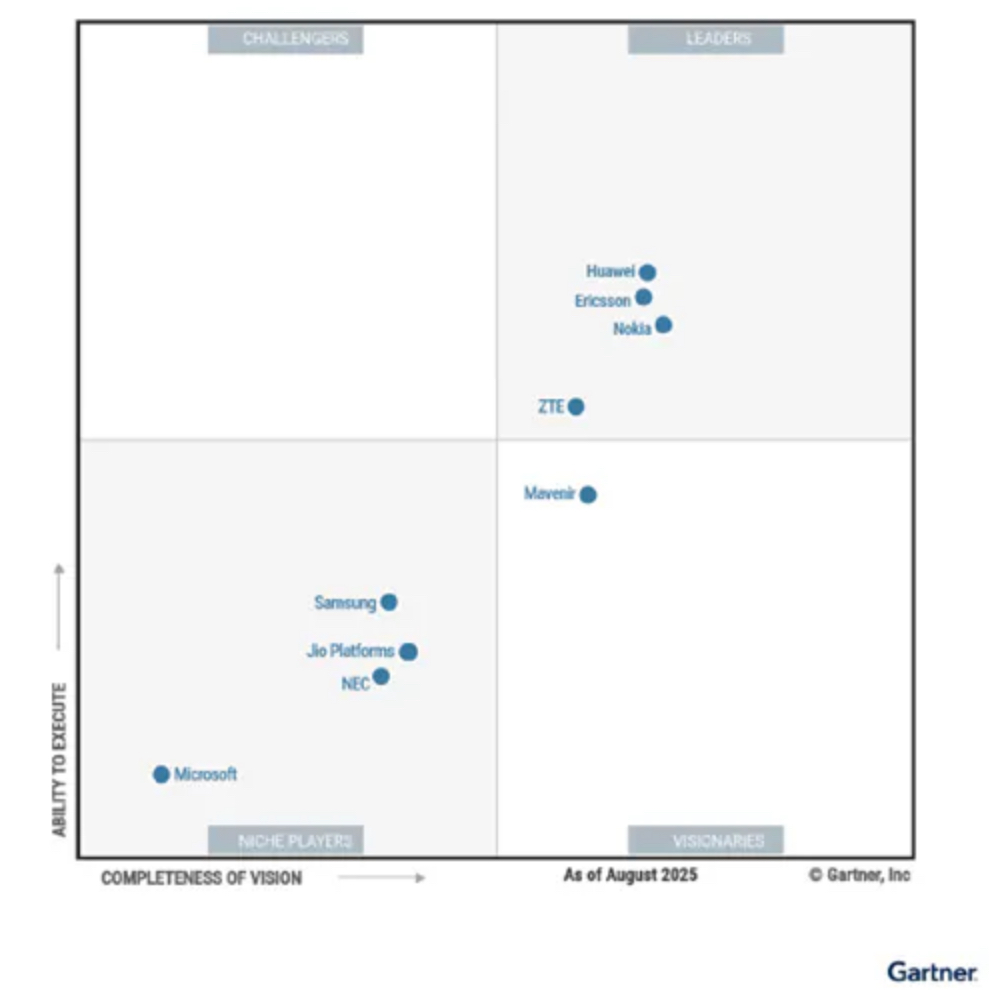 Recently, Gartner, a globally recognized research and advisory firm, released a report titled 2025 Magic Quadrant for 5G Core Network Infrastructure Solutions. In this report, Huawei was recognized as a leader in the Magic Quadrant and achieved the top ranking in terms of ability to execute, thanks to its comprehensive strengths in technological innovation and market execution. This achievement marks the global industry’s high recognition of Huawei’s strategic vision and execution capabilities in the 5G core network field.