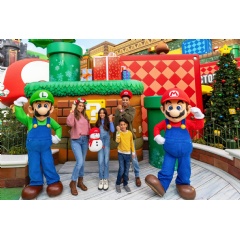 Before stepping into the Mushroom Kingdom at SUPER NINTENDO WORLD, guests will encounter two cheerful snowmen, one sporting Mario’s signature red hat and scarf, the other donning Luigi’s green cap and scarf, alongside a sparkling tree crowned with a Super Star. Guests can also explore a selection of special holiday merchandise available at retail locations throughout the theme park, including the 1-UP Factory™ shop within the land.