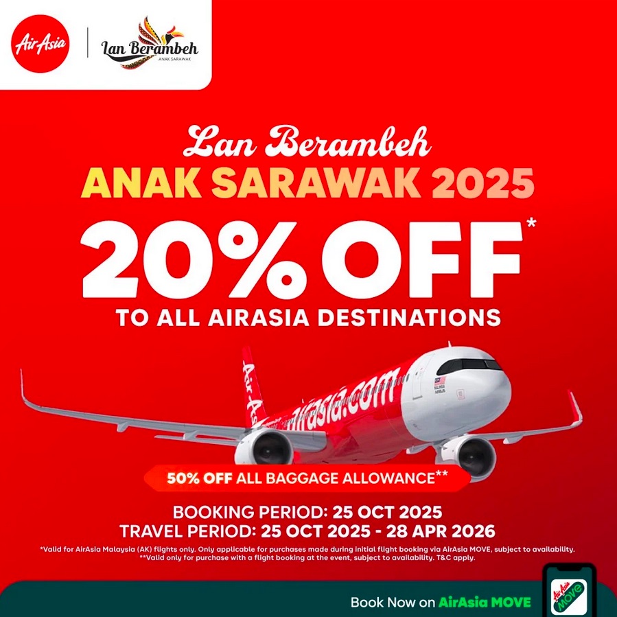 *Valid for all flights operated by AirAsia Malaysia (AK) only and bookings made on 25 October 2025, for travel between 25 October 2025 and 28 April 2026. Only applicable for purchases made during initial flight booking via AirAsia MOVE, subject to availability. T&C apply.