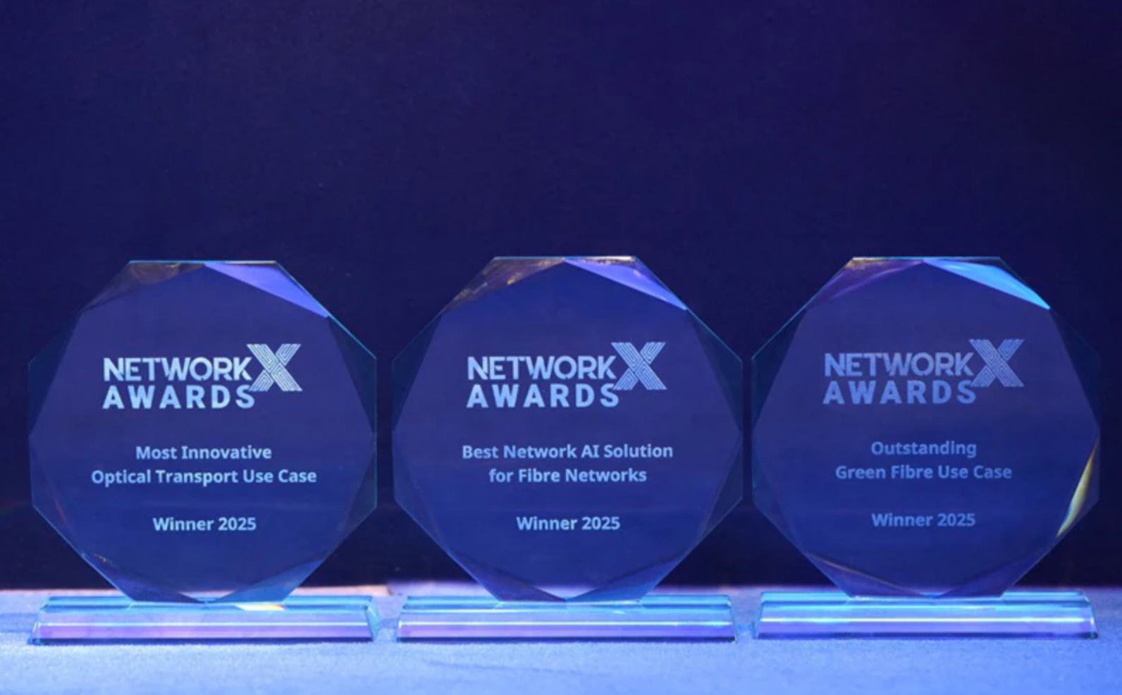 At the Network X 2025 ceremony, Huawei won three awards: Most Innovative Optical Transport Use Case, Best Network AI Solution for Fibre Networks, and Outstanding Green Fibre. These honors reflect Huawei’s strong technology, continuous innovation, and market leadership in all-optical networks.