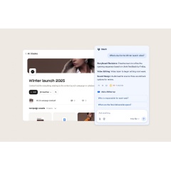 Get answers about your work without switching tabs or tools. Ask “What’s new in the latest version of the client proposal?” or “Can you summarize all the reporting from last year’s brand campaign?” Then turn answers into action with Dash’s AI-powered writing tools.